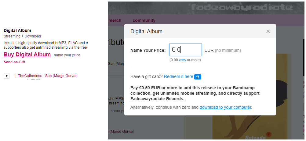 밴드캠프 사이트는 다음과 같다.
