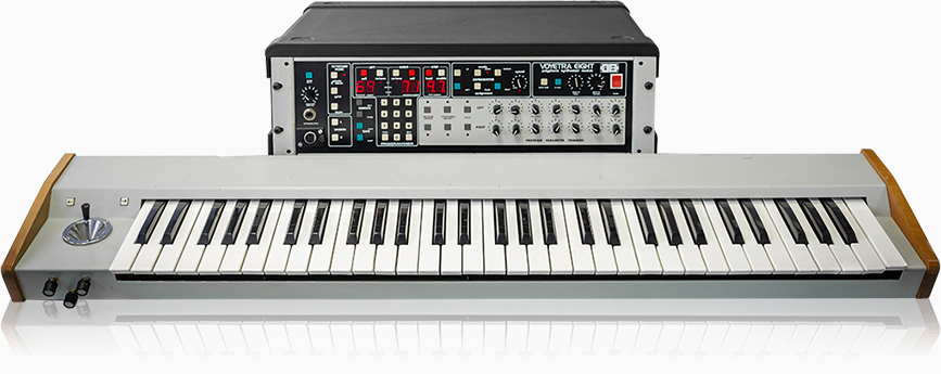 건반 뒤의 박스가 신디사이저/시퀀서 본체이다. 건반은 요즘 미디키보드처럼 연주/입력용.