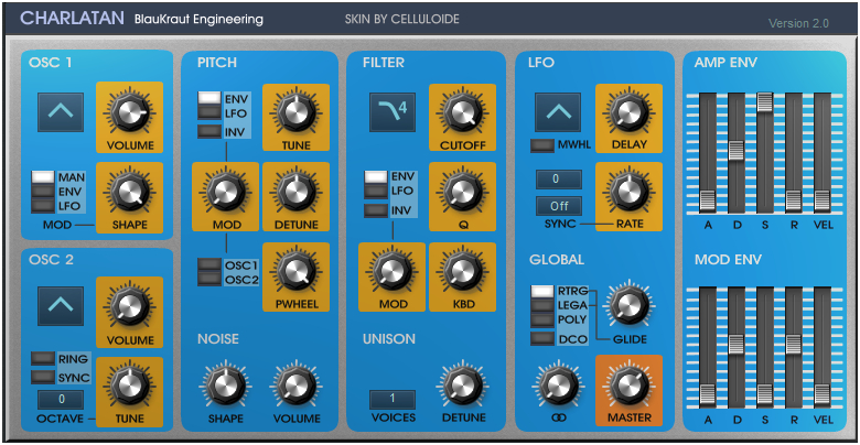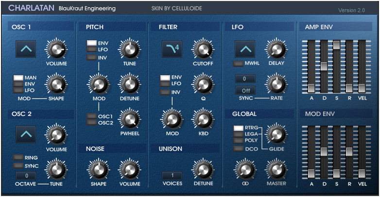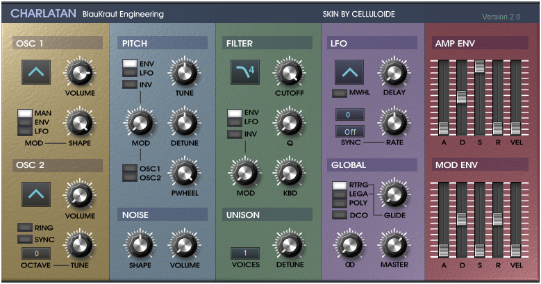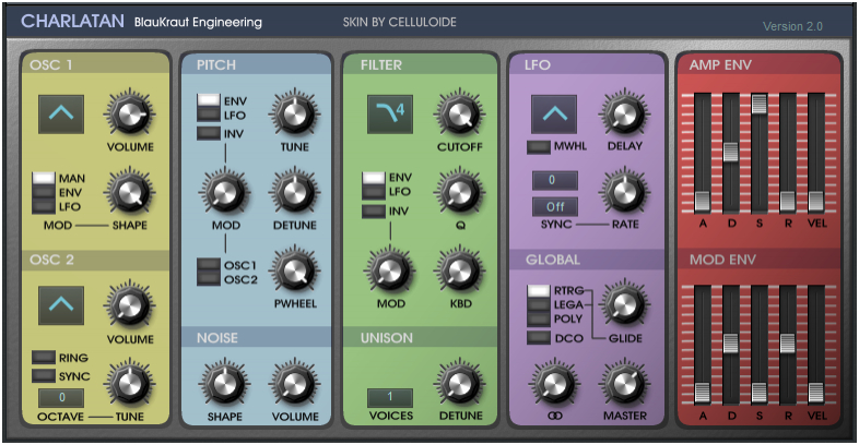 BlauKraut Engineering에서 제작한 freeware VSTI인 Charlatan의 스킨이다.