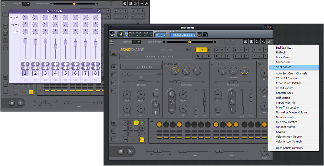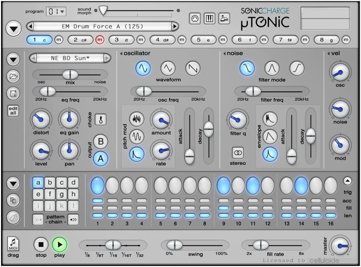 Microtonic is a VST/AU plug-in for Windows and Mac featuring a unique drum and percussion synthesizer combined with a pattern based drum-machine engine.